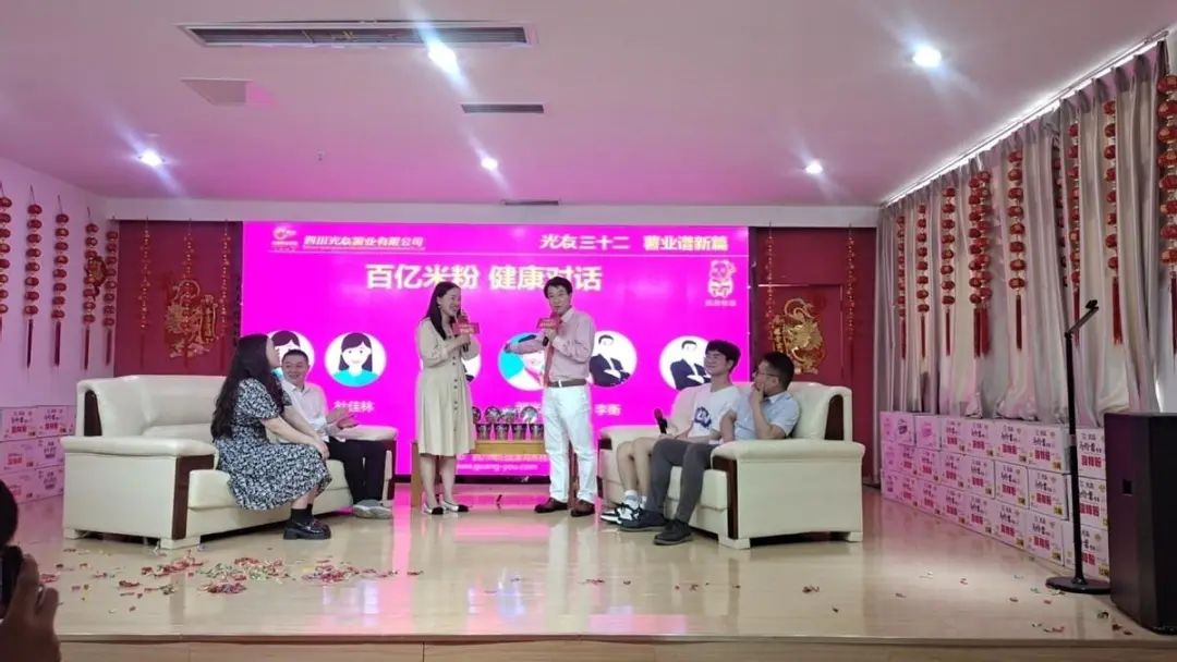 為更直觀地了解光友薯類健康主食,本次活動還特別邀請五位嘉賓上臺與鄒光友董事長現(xiàn)場健康對話,對話的嘉賓分別是綿陽城市學(xué)院雙創(chuàng)中心主任李衡、綿陽市靖華節(jié)能環(huán)保科技董事長王華、四川敬科智能裝備科技副總經(jīng)理肖飛雨、綿陽西城大學(xué)生創(chuàng)新創(chuàng)業(yè)園創(chuàng)業(yè)導(dǎo)師杜佳林、綿陽城市學(xué)院雙創(chuàng)中心何愛清,與會嘉賓在這里共同探討米粉行業(yè)的未來發(fā)展趨勢及健康飲食的重要性,共享基地帶動大學(xué)生創(chuàng)新創(chuàng)業(yè)發(fā)展。
