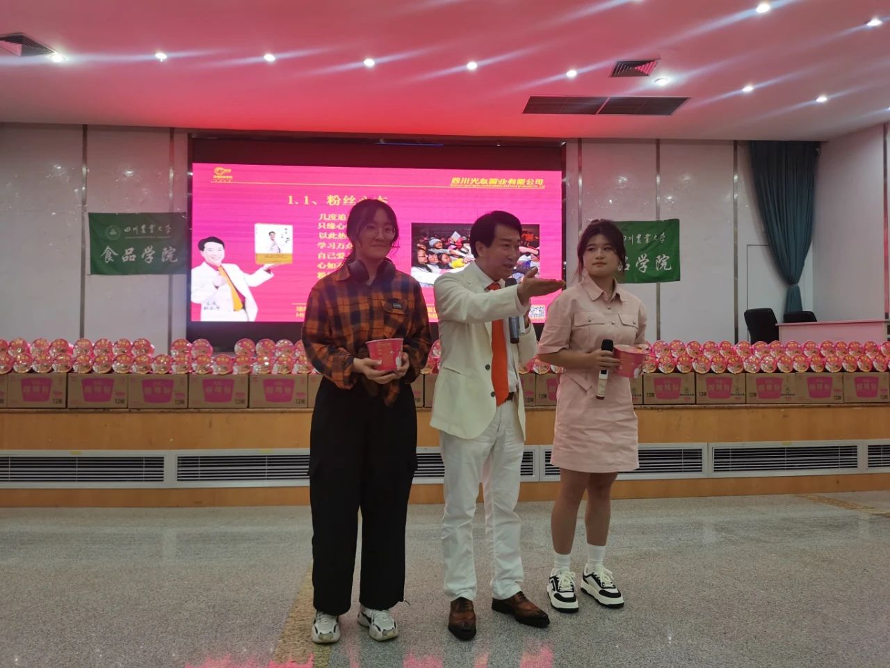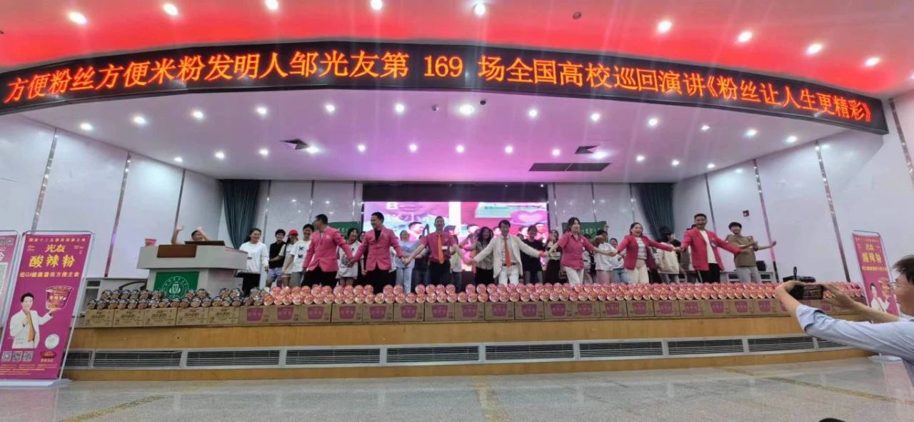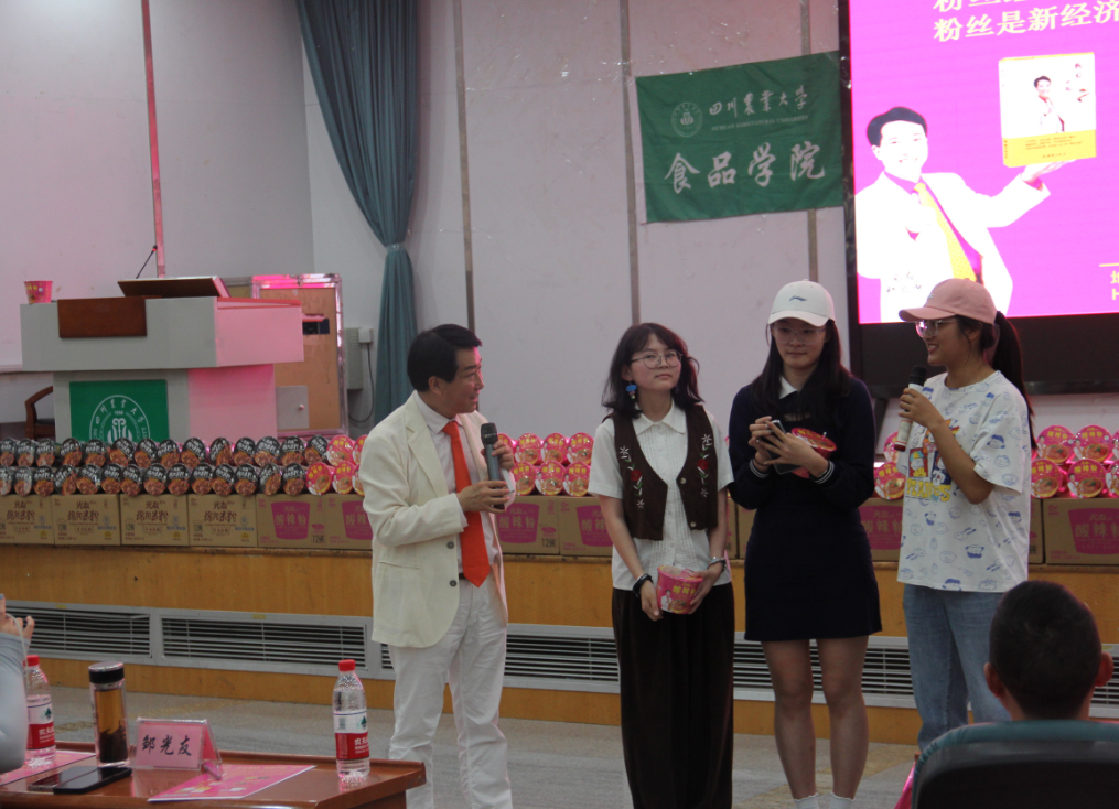 下午三時許,中國食品產(chǎn)教融合共同體副理事長、中國食品科學技術(shù)學會理事、方便粉絲方便米粉發(fā)明人、方便粉絲專家、教授級高工、新中國成立60年“三農(nóng)”模范人物、光友薯業(yè)創(chuàng)始人、光友薯業(yè)董事長鄒光友在四川農(nóng)業(yè)大學食品學院如期舉行全國高校巡回演講第169場——《粉絲讓人生更精彩》,這場關(guān)于創(chuàng)業(yè)的勵志演講大獲成功,近700人的禮堂現(xiàn)場一片歡騰,在座師生和直播間的觀眾無不受益良多。