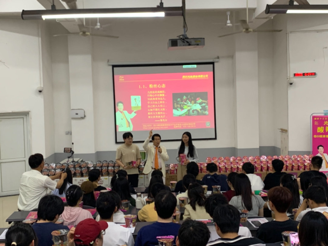 演講過程中,光友薯業(yè)董事長強(qiáng)調(diào),他與光友薯業(yè)始終不忘初心,從未停止過改變紅薯命運(yùn)的偉大愿景,光友薯業(yè)在32年間,共進(jìn)行了六次具有歷史突破性的粉絲革命,先后斬獲國內(nèi)外多項榮譽(yù)與專利,并在不久前全新發(fā)明了全球領(lǐng)先的低GI健康薯類主食——光友綿陽米粉和光友酸辣粉,科學(xué)健康和方便美味完美相融,該類粉絲一經(jīng)亮相,便立即受到了業(yè)內(nèi)外的認(rèn)可與追捧?,F(xiàn)場同學(xué)食指大動,也對光友這個國貨老品牌有了全新的認(rèn)知。
