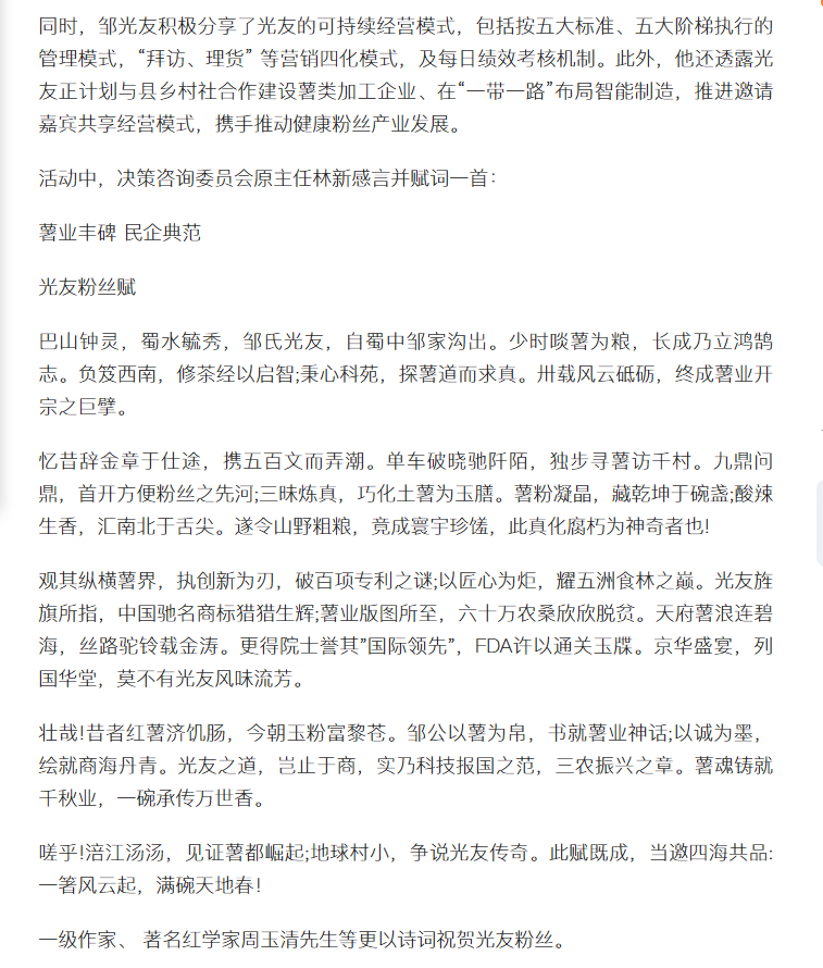 第三屆粉絲論壇 健康粉絲峰會(huì)在中國光友紅薯博物園召開